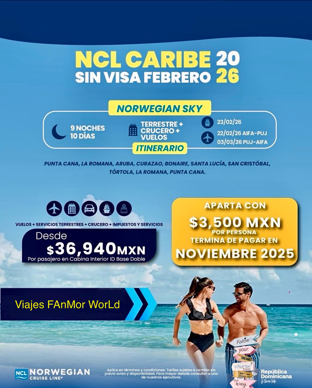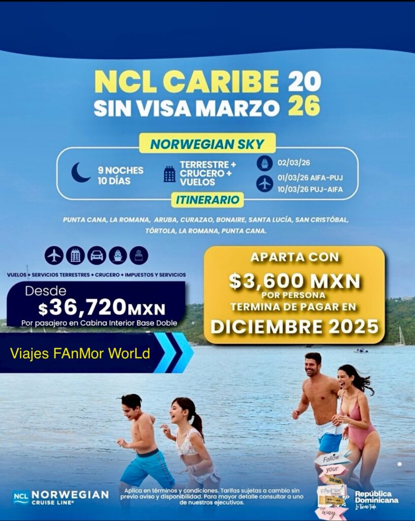 TODO LISTO PARA QUE DISFRUTES TU CRUCERO AL CARIBE SIN VISA COMODAMENTE.